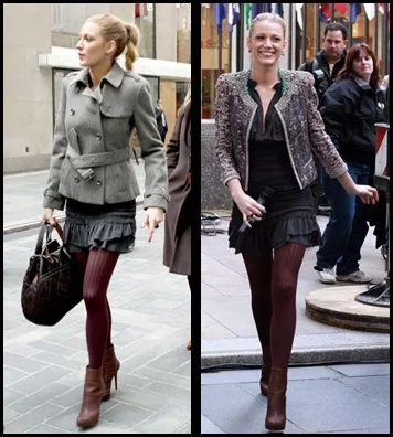 Blake pro slavnostní příležitost zvolila kombinaci oblečení, která je dost ‚celebrate‘, a přitom ne příliš okázalá – černé volánové mini v kombinaci s hnědými punčochami jsou mixem, který klidně můžete s jednoduchým kardiganem nebo blejzrem nosit do práce. Blake vyladila dlouhé nohy kotníčkovými louboutinkami a luxusním třpytivým sáčkem dotáhla malé černé k dokonalosti.