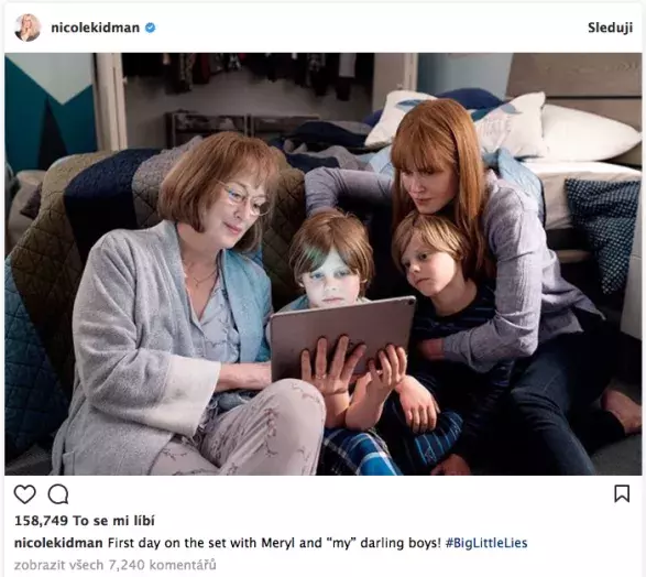 Herečka Nicole Kidman se nedávno stala členkou naši Instagramového sekty a pochlubila se i fotkou z prvního dne natáčení druhé řady Sedmilhářek.