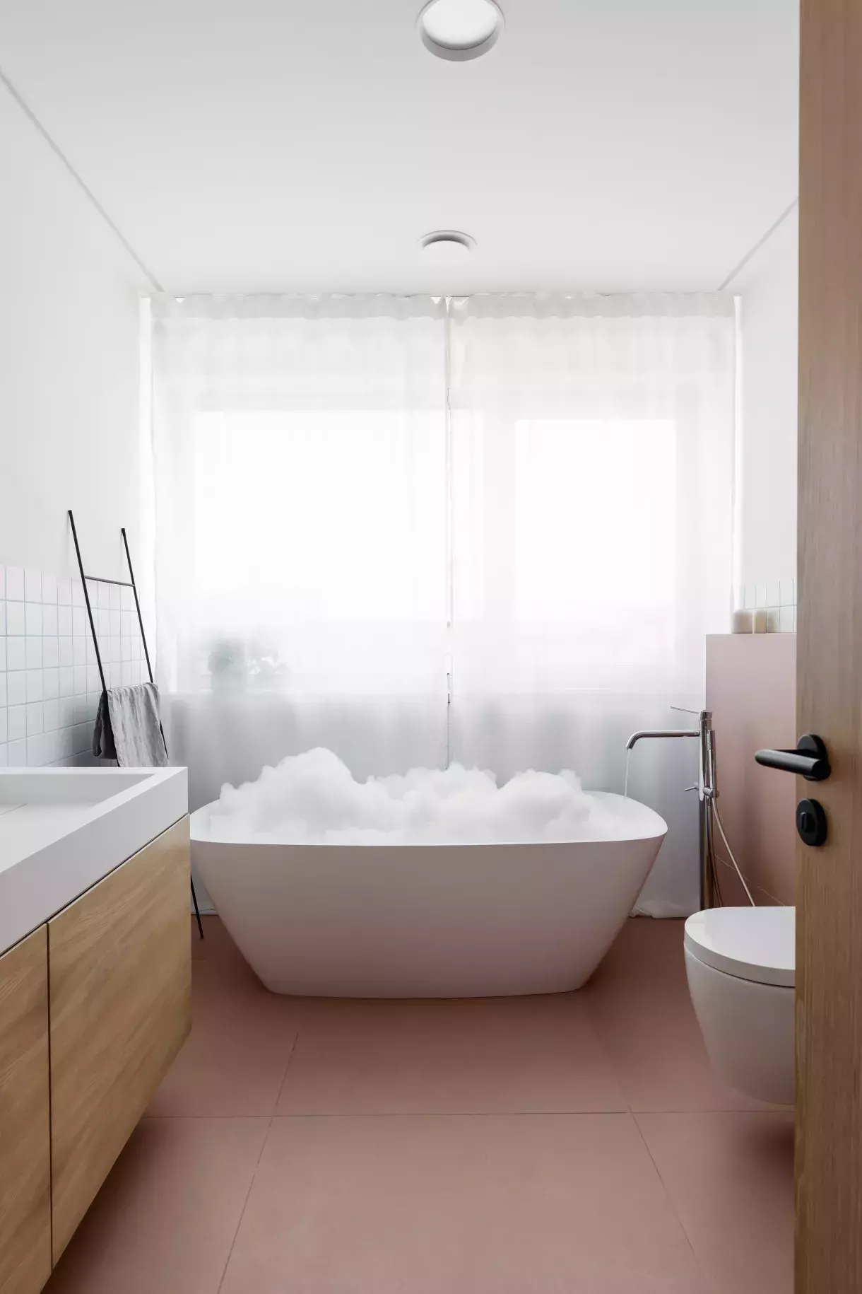 Na instalaci růžového betonového ostrůvku kralujícího (nejen) kuchyni se Martina těšila ze všeho nejvíce. „Když byl konečně na místě a všechny části na sebe sedly, docela jsme si oddychli,“ říká. „Přece jen váží asi čtyři sta kilo a dopravit ho do interiéru vcelku a umístit ho tak, aby vše sedělo podle zadání, byly trochu nervy.“