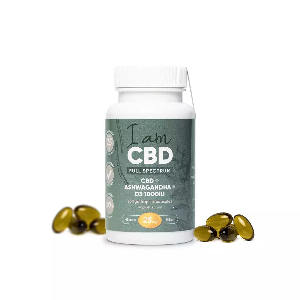 Full Spectrum CBD kapsle 1 500 mg, D3, Ashwagandha 60 ks, prodává Iamcbd