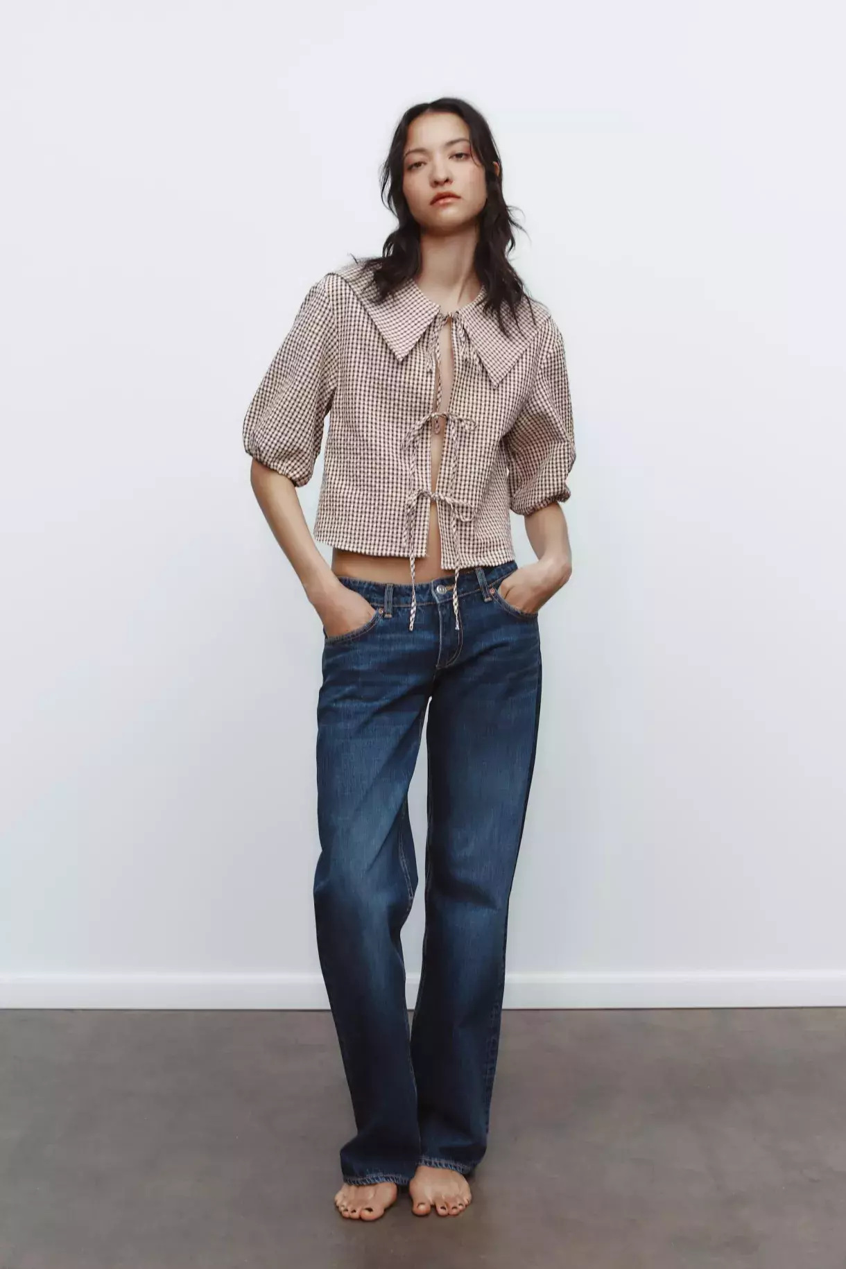 Gingham hnědá halenka, Zara, 699 KČ