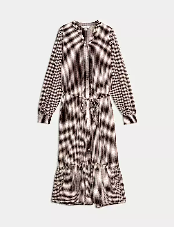 Gingham červenobílé midi šaty, Zara, 1 199 KČ