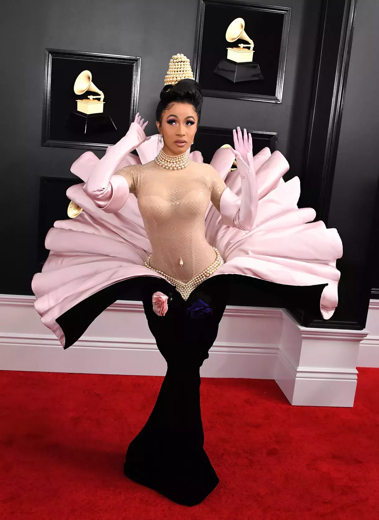 Hudebnice Cardi B, která při příležitosti 61st Annual GRAMMY Awards oblékla šaty od Thierryho Muglera, 2019