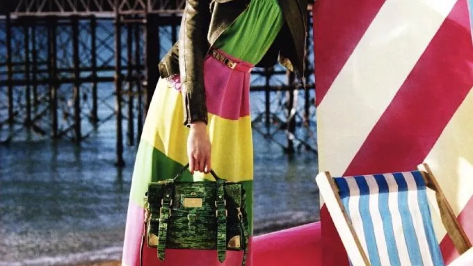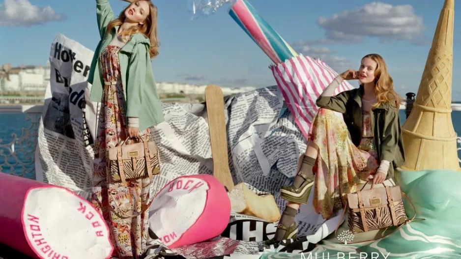 Scéna vystavěná pod dohledem art directora Ronnieho Cookea Newhouse, nastylovaná Edwardem Enninfulem a zachycená fotografem Timem Walkerem, představuje letní ráj. Hraje si s barvami kolekce, skvěle je podtrhuje, a nebylo by to Mulberry, aby ve scéně chyběla nějaká zvětšenina. Na rozdíl od muchomůrek, které hrály prim na podzim, na jaře a v létě se dočkáme zmrzlinových kornoutů a lízátek. Mňam.
