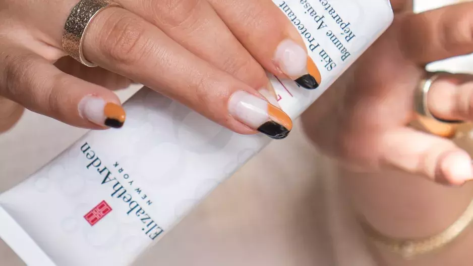 2. Dále použili pleťovým krém z řady Essentials s růží, který obsahuje i růžový pigment, takže podporuje rozjasnění pokožky. Pak nanesli oční krém značky Shiseido, který aplikovali jak v okolí očí i v rámci nadočnicového oblouku.