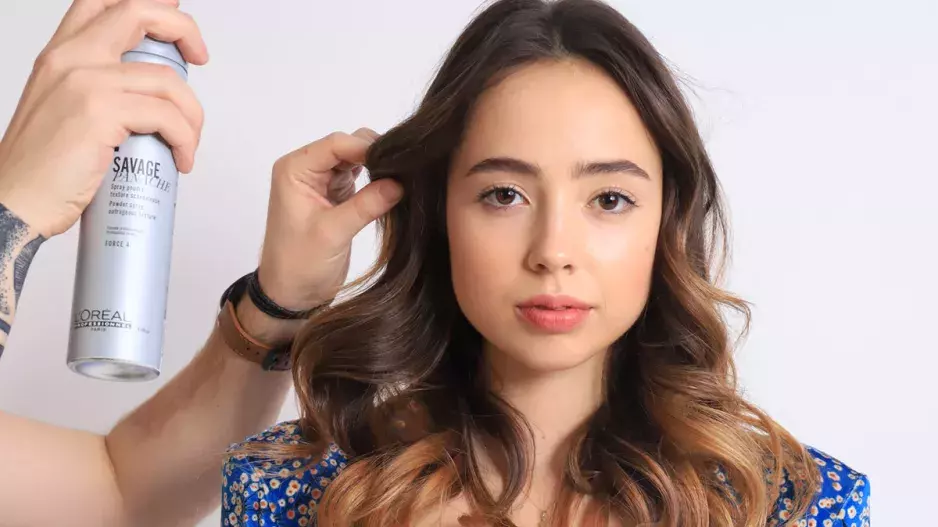 Svou dívčí křehkost ráda podtrhuje originálním neokoukaným účesem. Matyáš Valeš z plzeňského salonu New Style ji naučil, jak si ho vytvořit během pár minut. Vlasy nejprve ošetřil tvarovacím sprejem Constructor a vyfoukal je, následně jednotlivé prameny natočil na kulmu. Účesu dodal texturu pudrovým sprejem Tecni.Art Savage Panache. „Ten jsem si zamilovala hned, protože mám ráda výrazné textury a tenhle ji umí vytvořit raz dva. Matyáš mě naučil i jak si vlasy správně kulmovat a že je dobré vždy vytáhnout z účesu pár pramínků, které hezky lemují obličej a účes pak vypadá hezky živě,“ dodává Valentýna. Pro zvětšení objemu si oblíbila i pudrový sprej Tecni.Art Super Dust (L´Oréal Professionnel, 280 Kč).