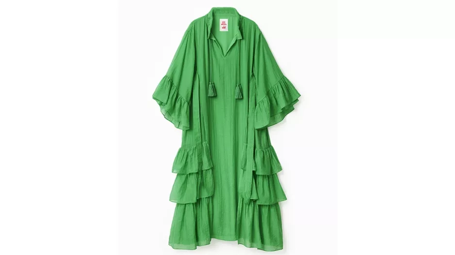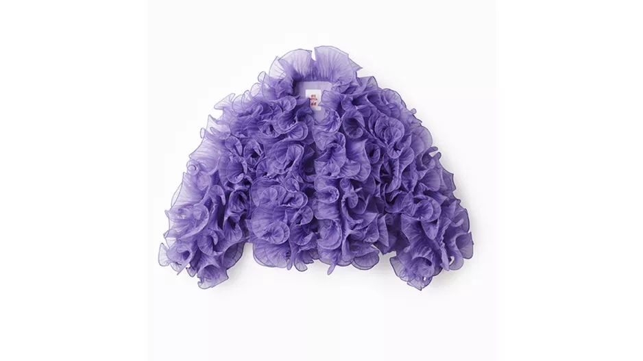 Klíčovým kouskem a zároveň Irisiným nejoblíbenějším kouskem? „Líbí se mi tyrkysově zelený oblek. Je to jeden z mých nejoblíbenějších kousků. Je ušitý z úžasné žakárové látky, na které jsou potištěné krásné hráškové lusky a vyšité hrášky z perel. Řemeslné zpracování a krejčovské práce jsou brilantní — vypadá opravdu jako haute couture. A nařasený fialový tylový top je také opravdu báječný a originální. Tolik objemu!“ prozrazuje Iris, o níž si můžete ještě víc přečíst v aktuální Elle.