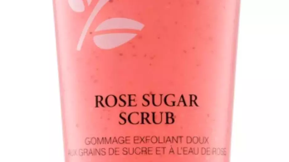 Lancôme Rose Sugar Scrub – Obsahuje krystaly cukru přírodního původu, růžovou vodu a med. Při kontaktu s kůží se okamžitě rozpustí a umožní jemnou exfoliaci, která příjemně voní.