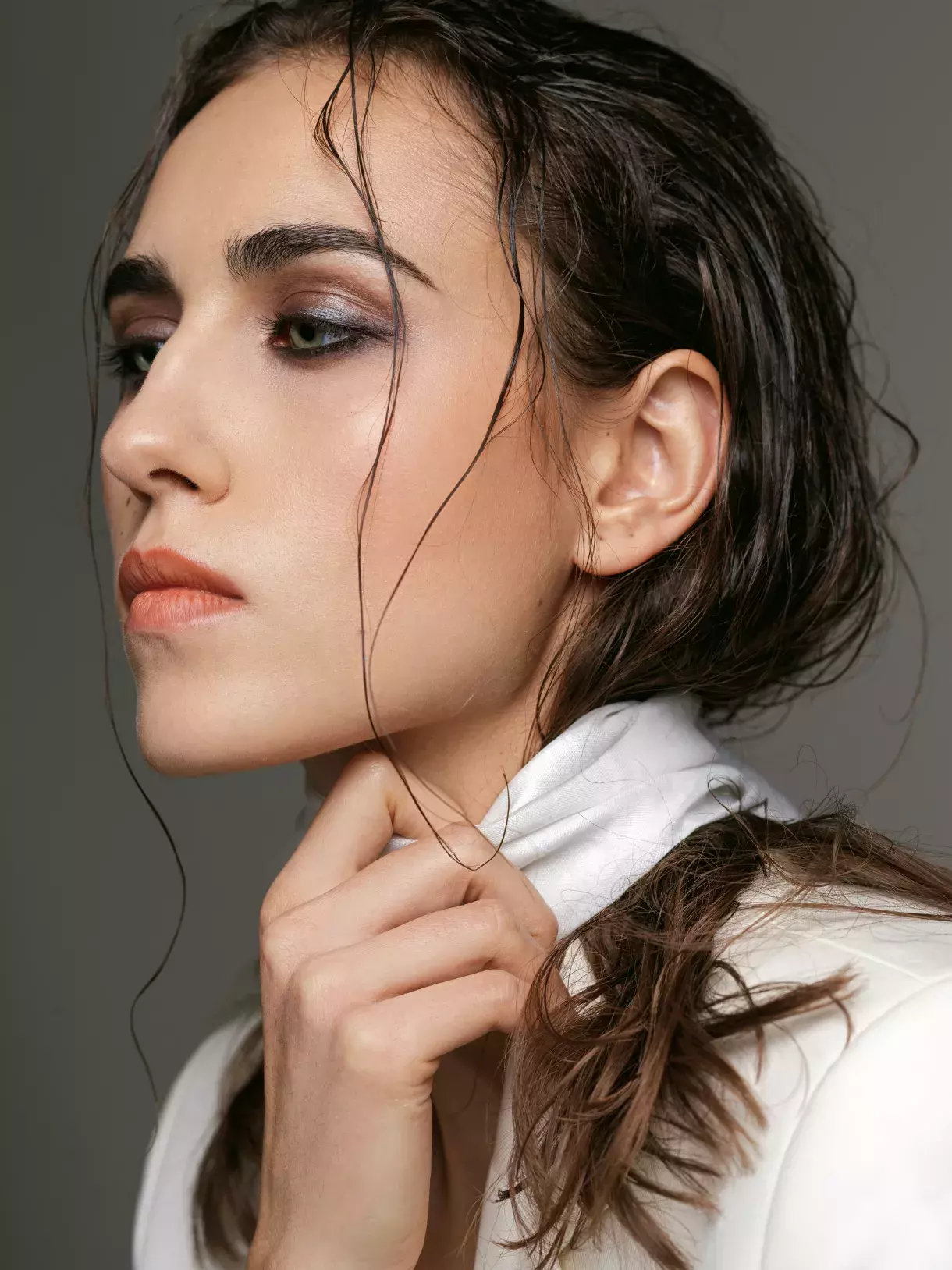 Kabát ROJI, kostýmek PIETRO FILIPI, boty H&M