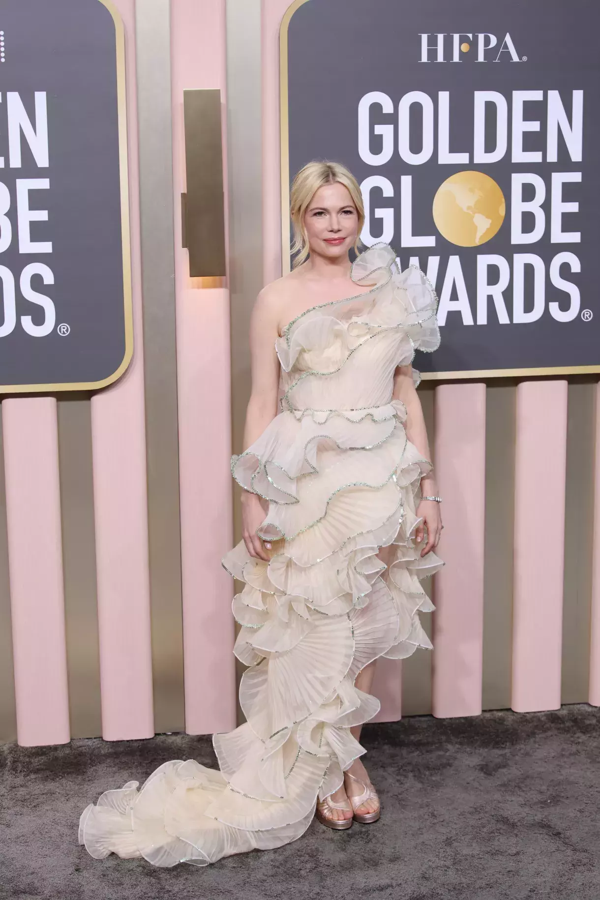 Michelle Williams na předávání Zlatých Glóbů 2023.