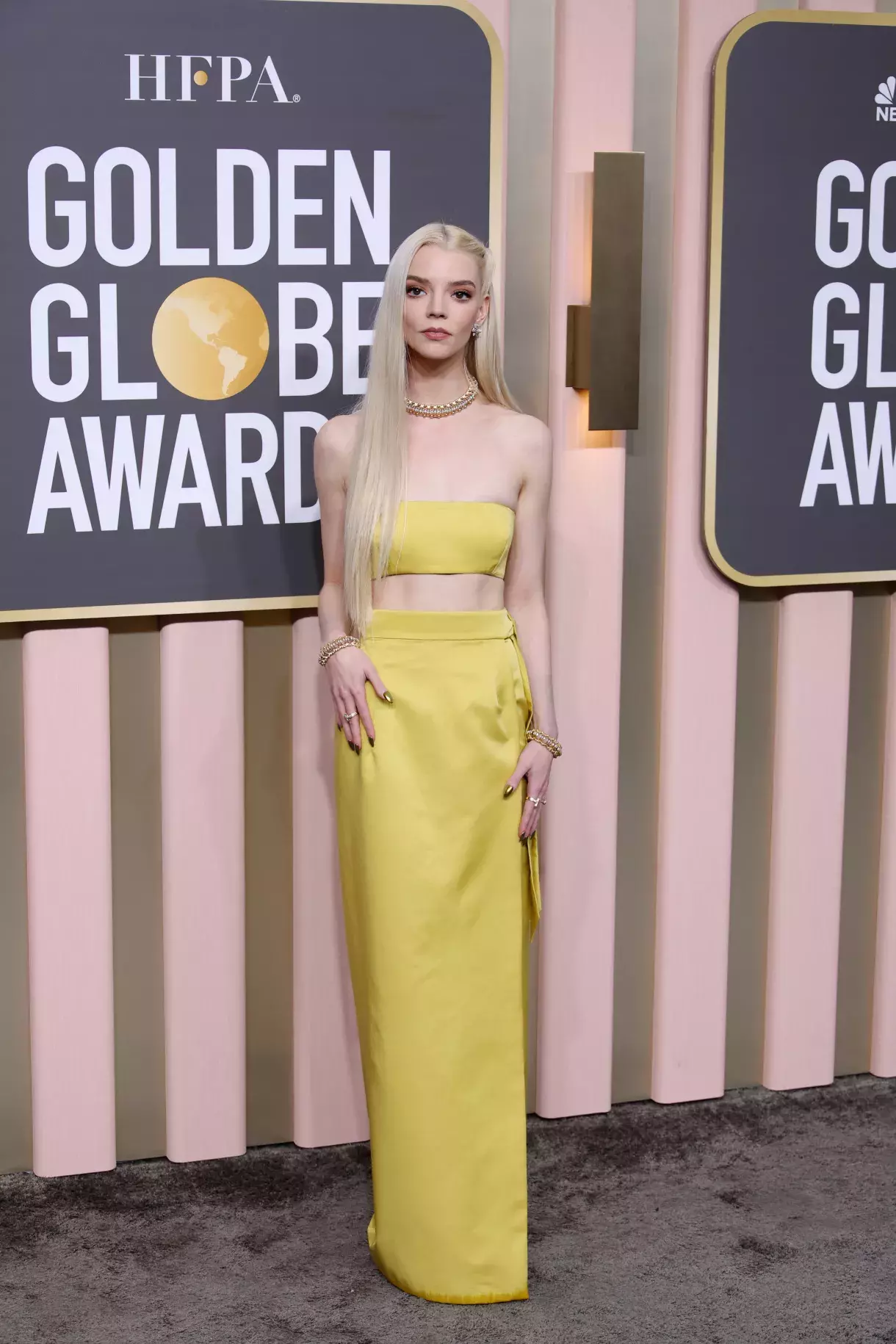 Anya Taylor na předávání Zlatých Glóbů 2023.