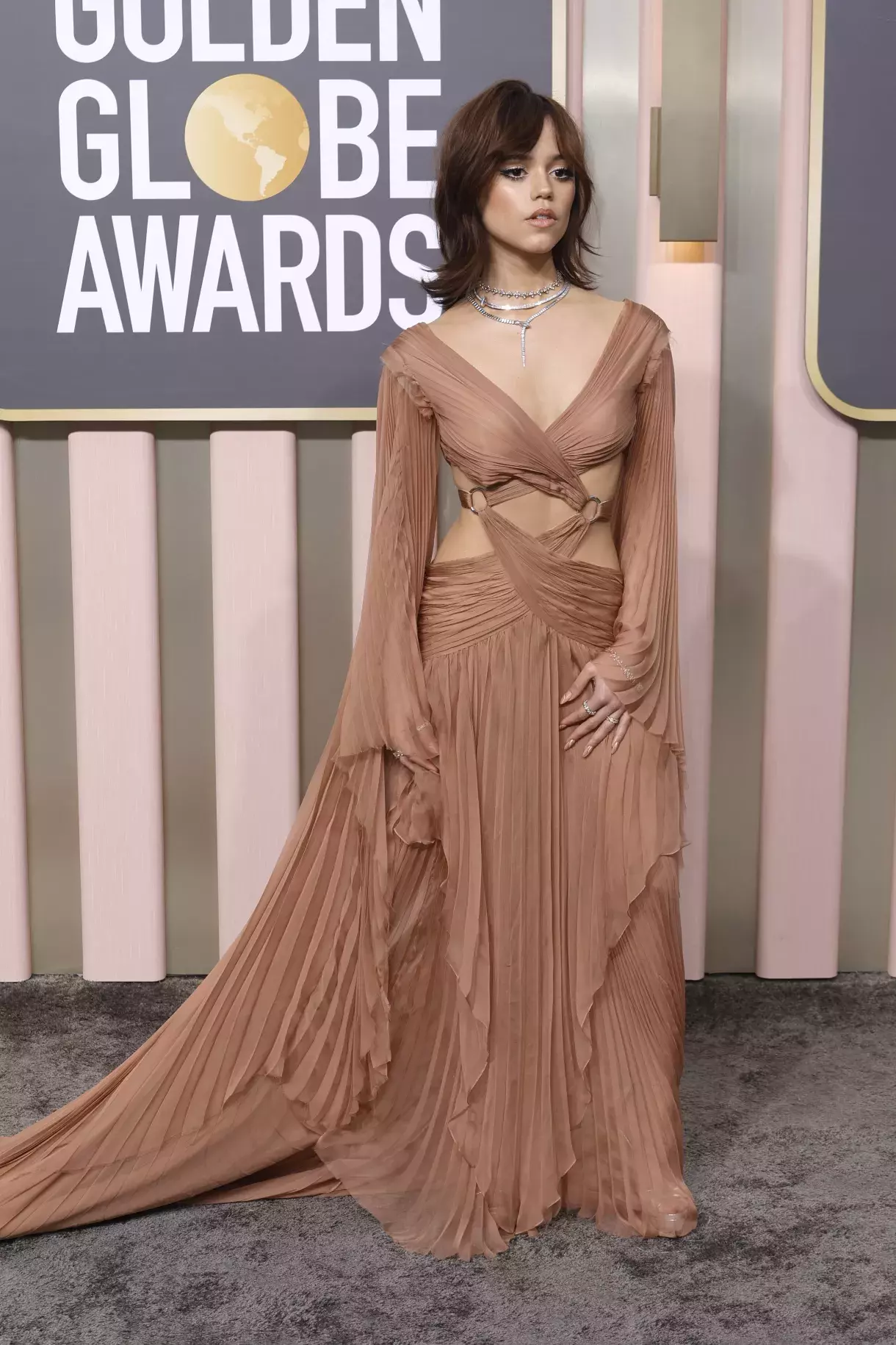 Jenna Ortega na předávání Zlatých Glóbů 2023.