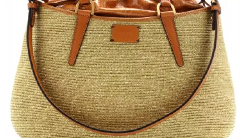 Slaměná kabelka s koženou aplikací, Fendi