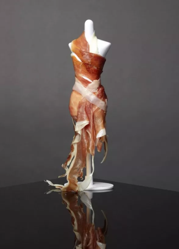 Anna se rozhodla napodobit i nechvalně známé šaty sešité z kousků masa, které si zpěvačka oblékla na předávání hudebních cen. A právě tenhle model jí prý trval nejdéle. Skoro dva týdny. Vyzkoušela totiž různé druhy salámů, sušeného masa i šunky, než konečně našla to správné masíčko.