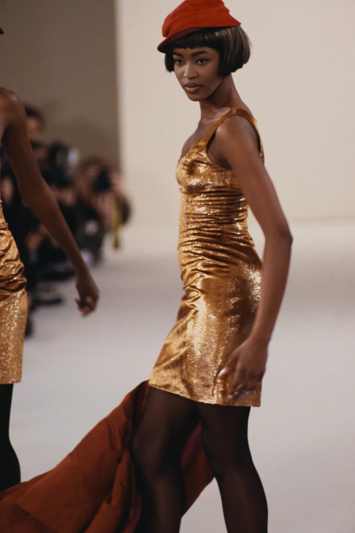 Claudia Schiffer během pařížského Fashion Weeku na přehlídce Chanel v roce 1994.