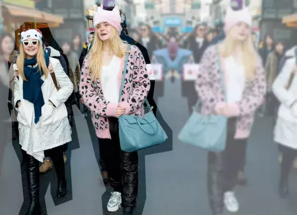 Dakota i Elle jsou filmovými kritiky obdivované za výkony na stříbrném plátně a módními experty za ty na červeném koberci. Zatímco starší z nadaného dua miluje dívčí umírněný styl, mladší Elle si potrpí na výstřelky a nebojí se ničeho. S oblibou nosí nejnovější kousky, které jen pár týdnů předtím předvedly modelky na runwayích během fashion weeků. A teď dívky dokázaly, že splynout s davem nedokážou ani při prohlídce centra města. Dakota zvolila poměrně jednoduchý základ. K bílému kabátu obula kožené kozačky a přes krk omotala kašmírovou šálu petrolejového odstínu. U toho ale nezůstala. Na vlasy si dala bílou ‚Hello Kitty‘ čepici a oči chránila před blesky fotoaparátů slunečními brýlemi s atypickými bílými plastovými obroučkami. Elle se svou bláznivou kreací nezůstala pozadu. Kožené kalhoty teplákového střihu doplnila stříbrnými teniskami na vysoké bílé platformě. K tomu přidala pink rozepínací svetr s leopardím vzorem a stejně růžovou čepici s oušky. Cennosti si pak, na rozdíl od sestry, jež na záda hodila batoh, nesla v bleděmodré kabele.