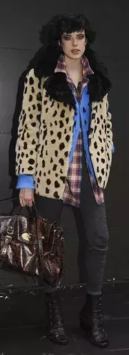 Tentokrát je zachycena v těžkém kabátě s leopardím tiskem, který se nebála zkombinovat s kontrastním svetrem se stejným vzorem a ležérní kostkovanou košilí.