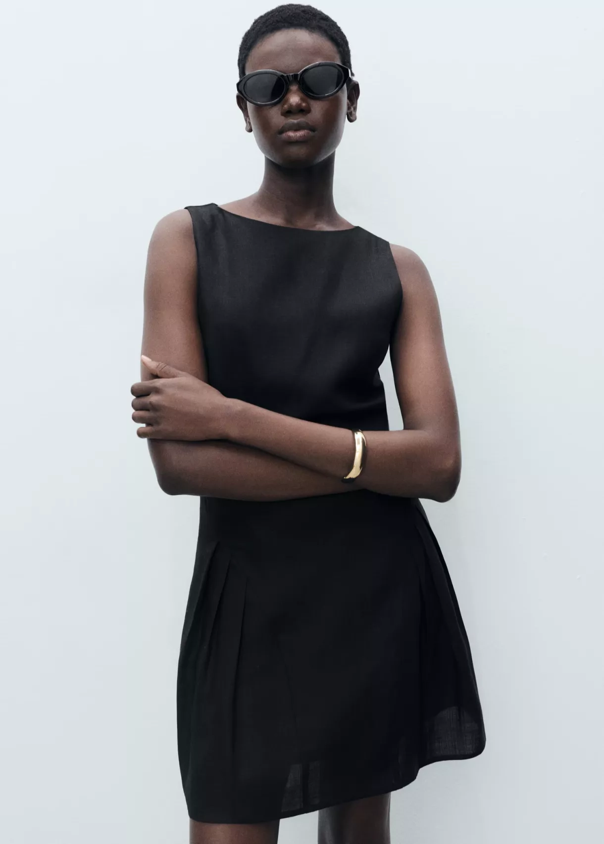 Krátké skládané šaty z lněné směsi, Mango, 599 Kč