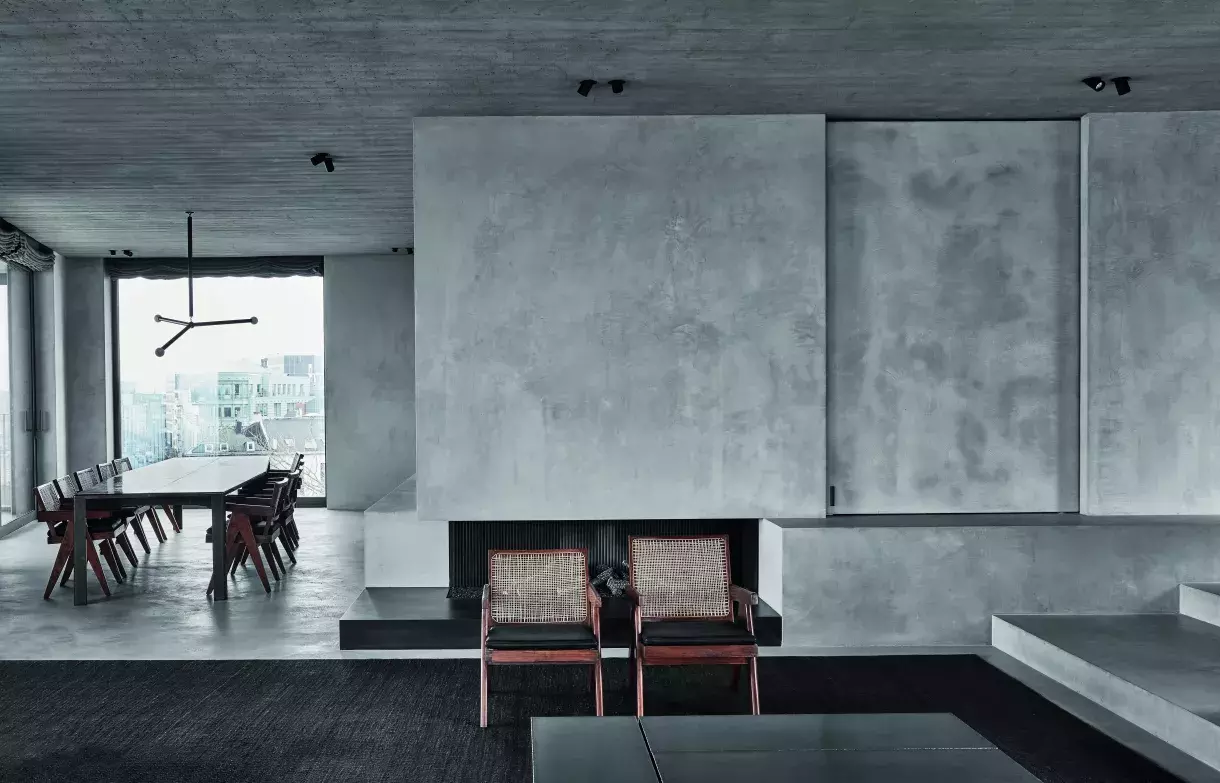Omezená škála barev a kombinace hrubě tkaných textilií s hladkým povrchem přírodního kamene byly klíčem k rekonstrukci starého městského domu v Antverpách.
