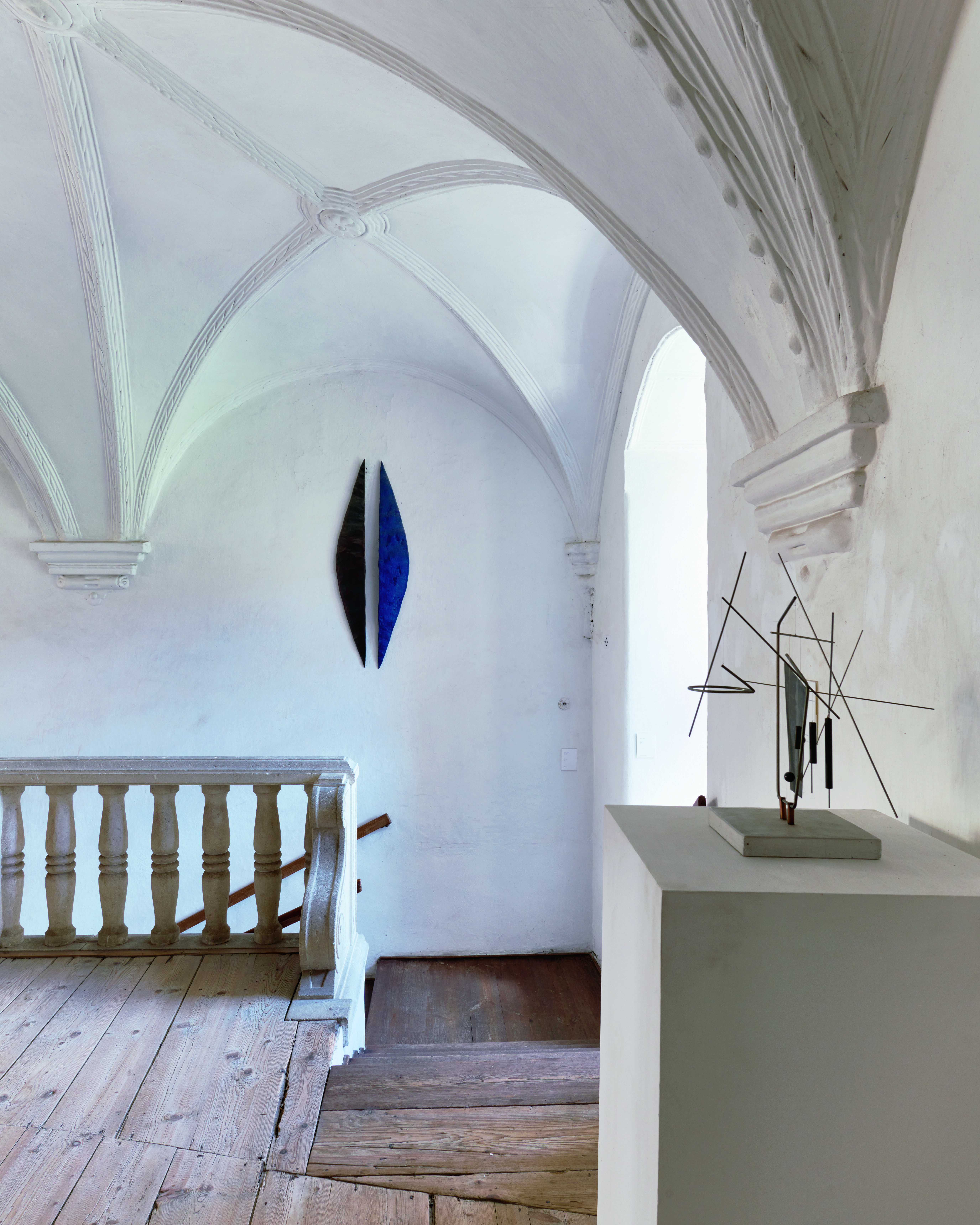Dosud téměř nevyužitý prostor ovšem přes svou velikost představoval také značné těžkosti. Sochař s architektonickým přemýšlením a scénografickými zkušenostmi ho však považoval za důležité naleziště jedné ze svých Kreseb. Velkorysé půlkruhy se tu dostávají do dialogu s danou geometrií trámů a komínu. Půda jako by ji sama nakreslila. Rozhodl se k ní vytvořit uměleckou dvojici, která by nebyla pokračováním, ale přirozeným doplněním a vytvářela nový vztah k již existující struktuře. Dramatické pnutí a přítomnost jistého řádu mnou prostupují pokaždé, když obcházím instalaci s příznačným názvem Fundort Dachboden (Půdní naleziště). Nemožnost ji nahlédnout v jednom celku umocňuje pocit umělecké hloubky přesahující lidskou snahu o kontrolu času a prostoru.