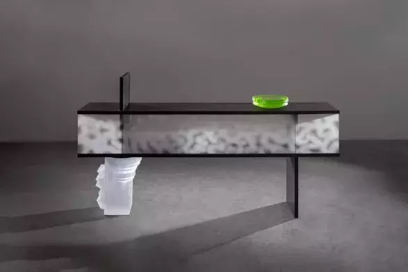 V galerii Rossany Orlandi vystavoval také svůj kus nábytku Tomáš Kučera. Cabinet Superfluum v sobě nese téma složitosti a nadbytečnosti. Místo jedné dřevěné nohy Tomáš použil 40 kilogramů těžkou skleněnou litou plastiku. Povrch kabinetu není pískován po celé ploše, ale organicky, abstraktně vrstvený. Na vrcholu kabinetu je umístěn malý piedestal z uranového skla. Tomáš se netají inspirací postmoderních designérů, a tak není divu, že kabinet něčím připomíná třeba kultovní totemy Ettora Sottsasse.