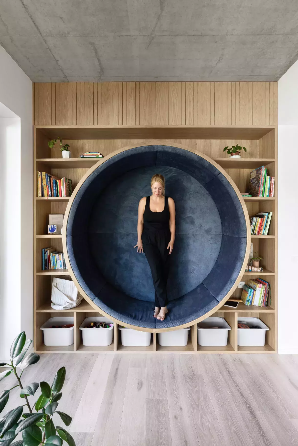 Odhalený betonový strop dává podle Martiny prostoru úplně jiný, pro mnohé možná překvapivě útulnější charakter, než projektanti zamýšleli. Ti původně navrhli podhledy. „To mi ale přišlo jako velká škoda, vůbec mi tam neseděly,“ hodnotí architektka.