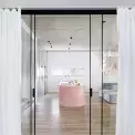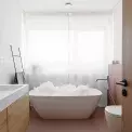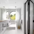 V domě byste našli koupelny celkem čtyři. Každá sice vypráví trochu jiný příběh, ale zároveň se krásně doplňují díky jednotícím prvkům, jako jsou jednoduché bílé dlaždičky nebo velkoformátová dlažba na podlaze.