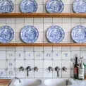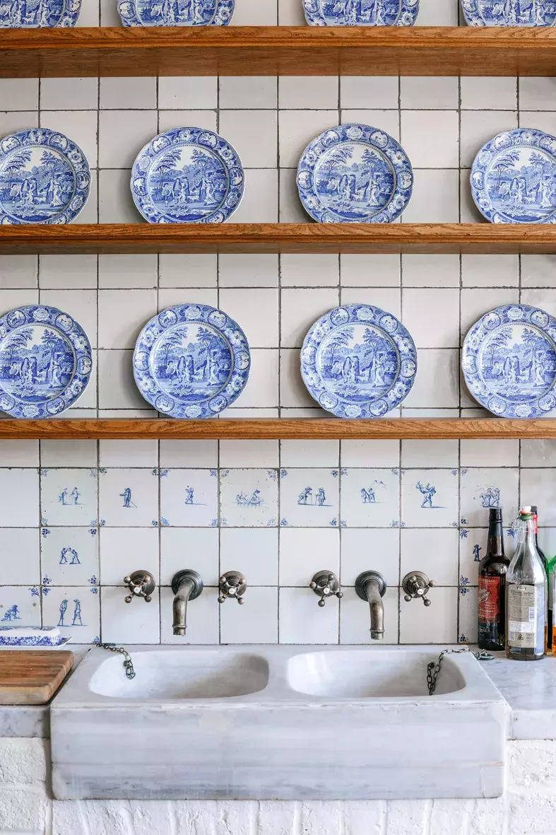 I když ve starožitném krbu ze Světové výstavy v roce 1851 se dá prý i upéct chléb, používají jej Loweovi maximálně pro vyhřívání místnosti a na vaření dávají přednost modernímu vybavení od značek Gaggenau, Miele či Sub-Zero. Veškeré spotřebiče jsou schované ve starém dřevě, takže na první pohled kuchyně působí jako na pravém anglickém venkově. Prostoru kraluje sbírka míšeňského porcelánu.