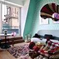 Logo, grafika i celková atmosféra reflektují to nejlepší ze ‚starých dobrých časů‘. Podlaha i deska baru jsou ze směsi recyklovaných materiálů včetně skla (a v noci se třpytí). Ze stejného materiálu je zhotovená i deska recepce.