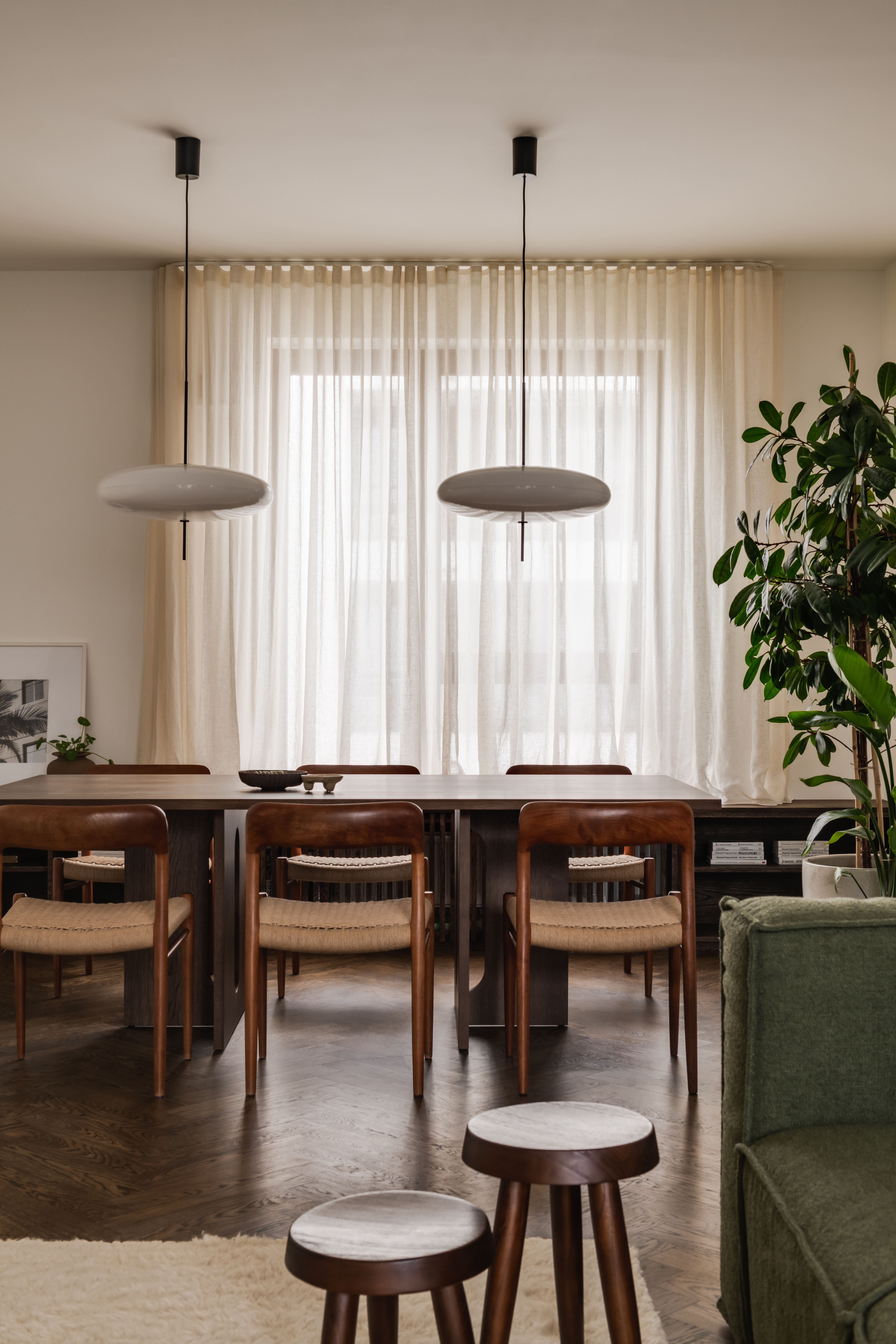 Byt v centru polské metropole obývá mladá nezávislá žena, která hodně cestuje. I proto se ve spolupráci s designérský duem ze studia MAP snažila vytvořit prostor ideální k odpočinku, načerpání energie a zklidnění smyslů. A takový návrat do stavu rovnováhy mysli, těla a ducha je hlavním posláním stylu japandi, který je momentálně velmi trendy. Představuje kombinaci japonského a skandinávského cítění, působí minimalistickým, funkčním, hřejivým a uklidňujícím dojmem a obsahuje prvky wabi-sabi, tedy přijetí krásy věcí v jejich pomíjivosti a nedokonalosti. Barvy bytu jsou pak vedle toho živou vzpomínkou na Keňu, oblíbenou destinaci jeho majitelky. Teplé, sytě hnědé a zelené barvy skvěle fungují v chladném polském světle, zejména pokud jsou pozadím pro sbírku pokojových rostlin.