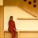 K podpisové značce Teklan patří, že se na snímcích sama objevuje. Záměrně jí není vidět do tváře, póza dodává kompozici příběh. Outfity ladí s barvami a náladou interiéru.