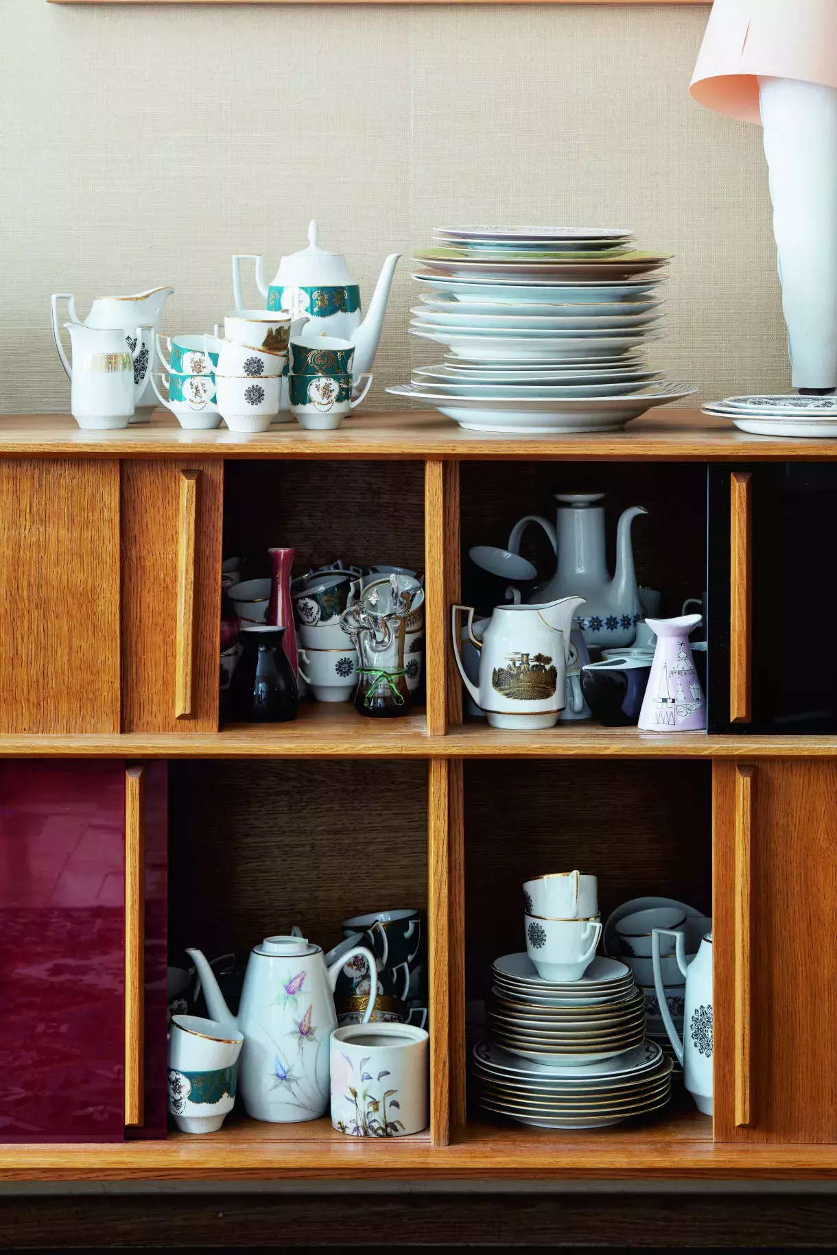 Komoda v obývacím pokoji ukrývá další sbírku porcelánu – tentokrát především kousků ze 60. let. Najdeme mezi nimi třeba modely od Jaroslava Ježka, jako jsou šálky a konvice Louise z porcelánky Pirkenhammer.