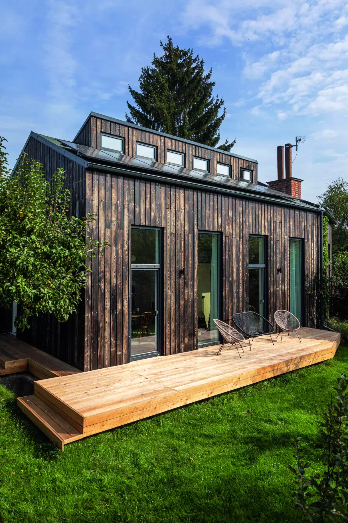 Nejsložitější bylo do ateliéru zavést vodu a odpad, kvůli čemuž se musela rozkopat celá zahrada, a bezpečně odstranit všechen azbest. Podlahu Jakub dotíral dopoledne na Štědrý den minulého roku a stůl vyrobil ze starých sklepních dveří. Dřevo opálil a položil na podnože Treesome. U stolu se sedí na židlích TON z bazaru Antik Nusle a svítí světly Alton značky Nordlux od Severského světla, které večer doplňují ambientní LED pásky rozmístěné po kovové konstrukci v celém ateliéru. Dracéna v rohu je od Olžiny maminky, která ji dostala před 35 lety na svatbě. Její větve prý symbolizují mámu, dvě dcery a nový výhonek nejmladší přírůstek do rodiny – dceru Lottu.