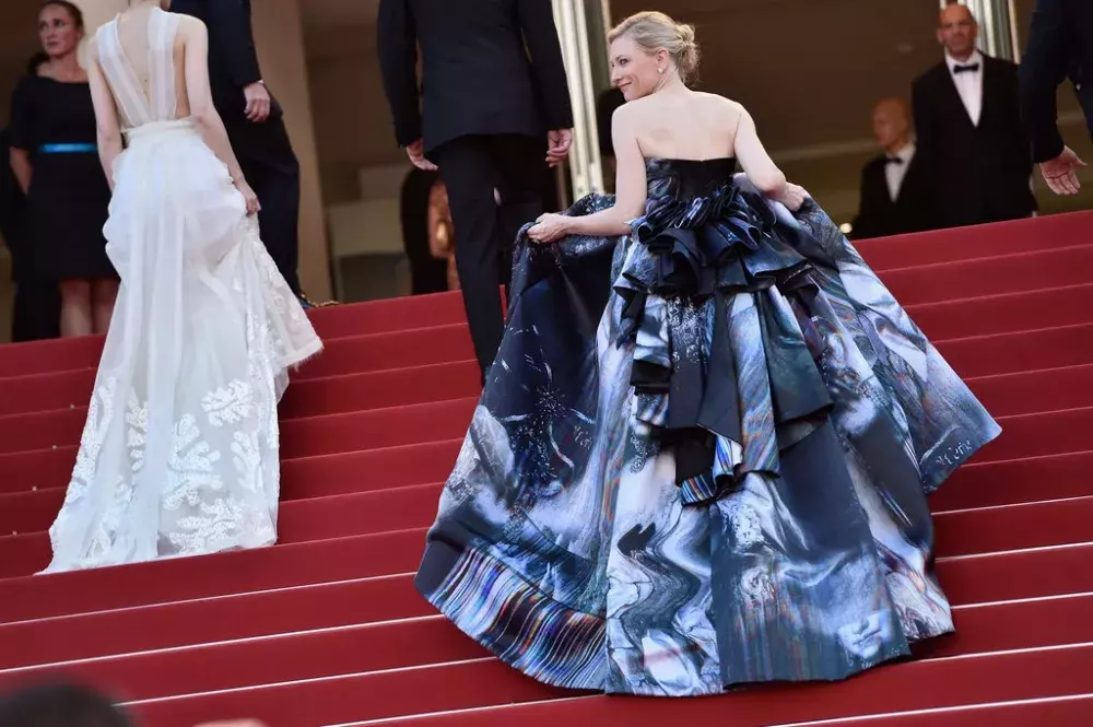 Cate Blanchett je bohyní i v extravagantních šatech bez ramínek značky Giles.