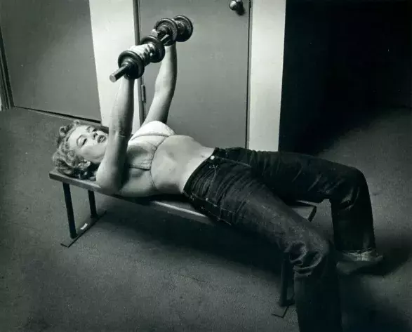 „Nikdy jsem se s cvičením netrápila. Nemám to ráda. Zato se mi líbí pevné svaly a na těch je potřeba pracovat,“ řekla při jednom rozhovoru světu šestadvacetiletá Marilyn. A popsala také, jak na pevných křivkách pracuje. „Ráno vstanu a hned poté, co si vyčistím zuby a setřesu ze sebe hustou oponu spánku, lehnu si na podlahu k posteli, do natažených rukou vezmu činky a asi deset minut je zvedám od země. Vím, že je to dobré cvičení, protože cítím, jak se mi formují pevné ruce.“