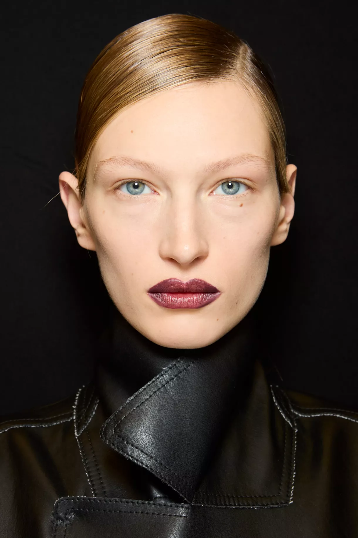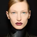 Temně burgundy rtěnka na přehlídce Iceberg