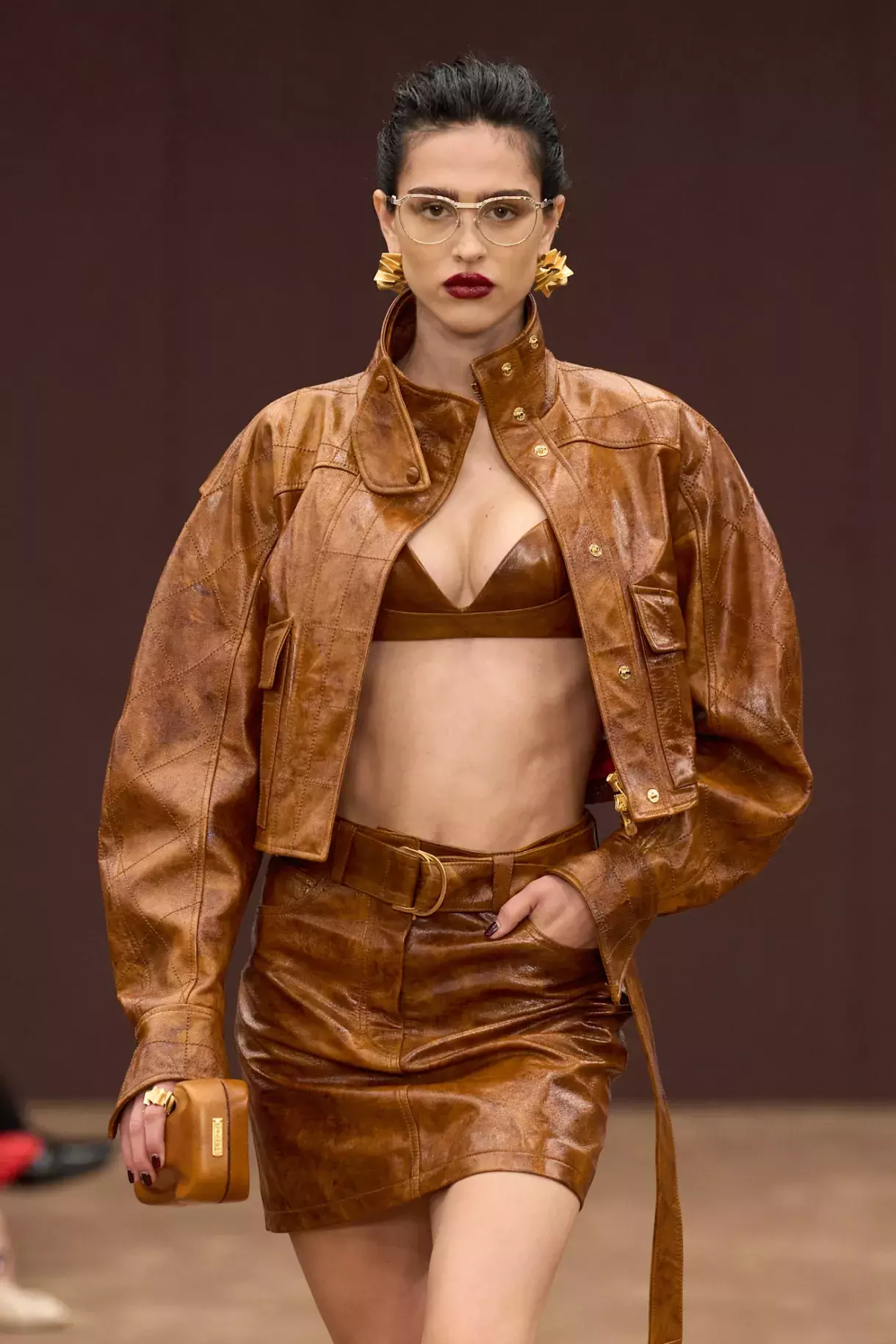 Tmavě rudé rty na přehlídce Ferrari