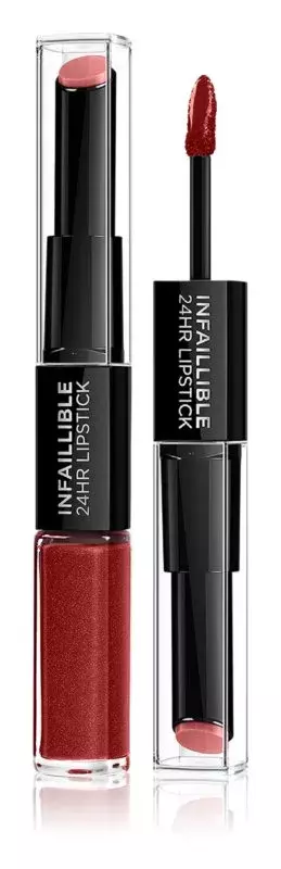 dlouhotrvající rtěnka a lesk na rty 2 v 1, L’Oréal Paris Infallible, odstín Boundless Burgundy, 207 Kč
