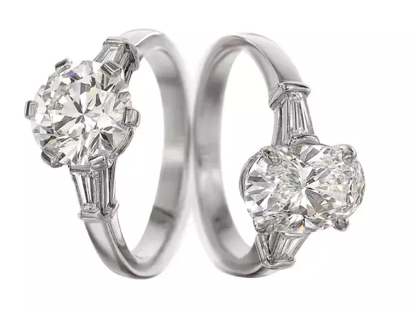 Zásnubní prstýnky přicházejí do butiků ve dvou provedeních. Váš nastávající může zvolit z kroužku obehnaného drobnými diamanty, kterému vévodí jeden velký. Aby bylo jasno, odkud prsten pořídil, je na obvodu vyryto typické logo klenotnické firmy. Druhá varianta je romantičtější. Něžné kroužky z bílého zlata na můstku z diamantu drží oválný či kulatý kámen. Bezchybně klenuté řezy hlavnímu diamantu dodávají kaleidoskopický rozměr, ve kterém se světlo odrazí od tisíce promyšlených úhlů.