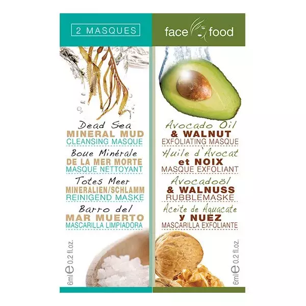 set dvou pleťových masek, Face Food Dead See Mineral/Avocado Oil & Walnut Exfoliating Mask, 52 Kč