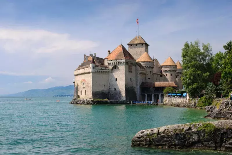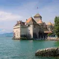 Hrad z 11. století je obklopen Alpami.