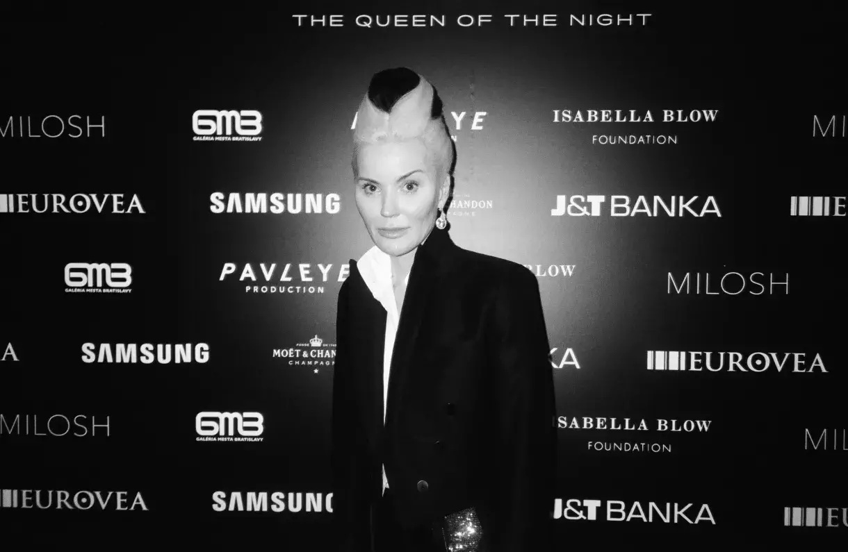 Kurátorka výstavy THE QUEEN OF THE NIGHT Lucia Ramljaková, Daphne Guinness a producent Milosh Harajda.
