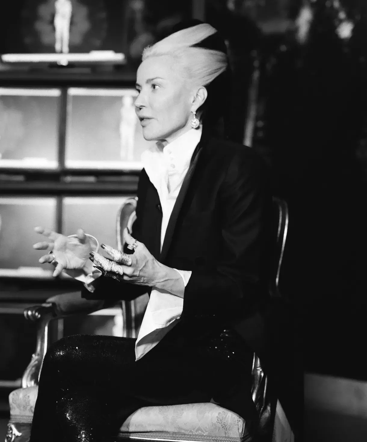 Daphne Guinness a Milosh Harajda během rozhovoru na vernisáži