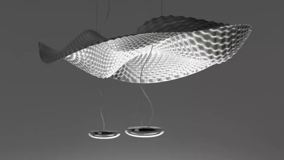 Mix Redakce / Sdílet Nepřímé světlo - designový hit Novému trendu propadl i věhlasný designér Ross Lovegro ve a navrhl pro Artemide lampu Cosmic Angel sospensione.
