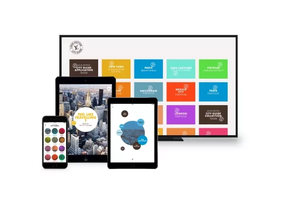 Edice Louis Vuitton City Guide je k dispozici i v digitální podobě. Mobilní aplikace pro iPhone či iPad obsahuje kompletní katalog měst a seznam doporučených adres je vždy aktuální. Speciální hosté, diskrétní místa na setkání, nejlepší místa na pozorování lidí, kultura, rady, fotografie – duch průvodců City Guide se neustále vyvíjí. Nyní je možné City Guide potkat i na Apple TV, kde běží doplňkové programy, i v Tambour Horizon, prvních chytrých hodinkách Louis Vuitton, jež propojují obsah z průvodců a s aplikací Around Me a funkcí 24 Hours.