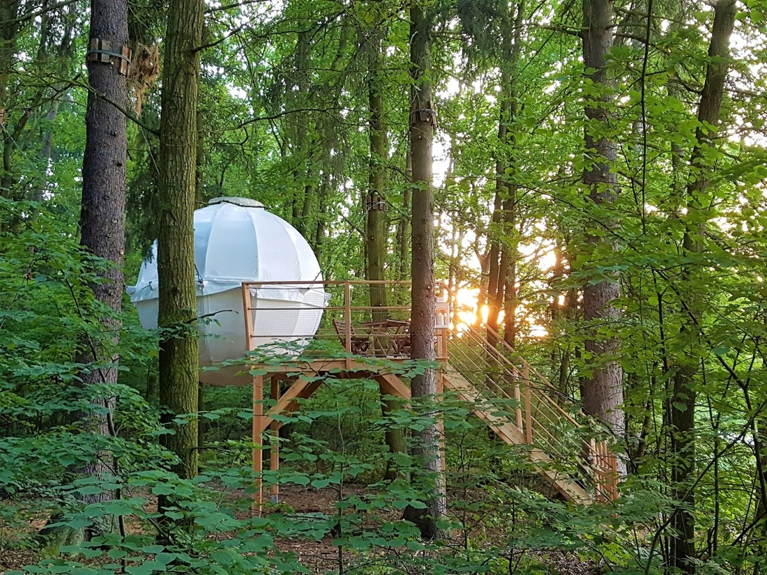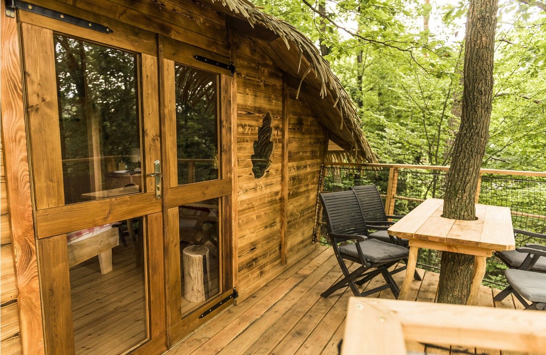 Od dubna do listopadu se můžete ubytovat v luxusním stromkovém domku s romantickou terasou ve výšce 9 metrů nad zemí. Pokoj je vybaven povlečením, svíčkami, nádobím a základními věcmi pro hygienu, bez vody a elektřiny a s možností objednání snídaňového koše. Cena okolo 4000,- za noc, maximálně pro 3 osoby.