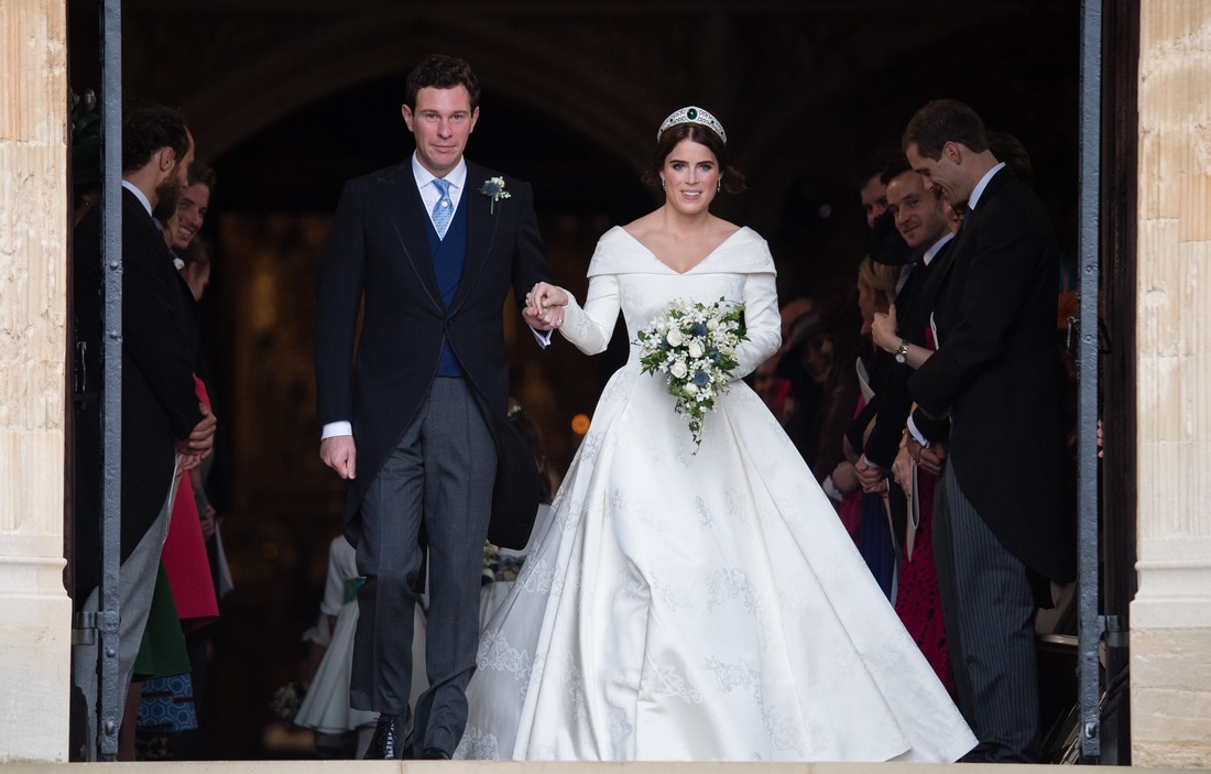 Přesto, že se většina očí toho dne upínala na krásnou princeznu Eugenii, mezi svatebními hosty nebylo o originální outfity nouze. Svatební obřad vnučky královny Alžběty II. proběhl na hradě Windsor v kapli sv. Jiří, kam bylo pozváno 850 hostů. Nevěsta oblékla róbu klasického střihu od návrhářů Petera Pilotta a Christophera de Vose. Rebelsky vynechala tradiční závoj a účes doplnila monumentální tiárou značky Boucheron.