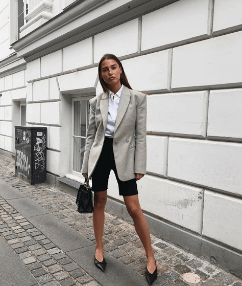 Jestli vás čeká den v kanceláři a nemůžete si dovolit žádné výstřelky, sáhněte po oversized saku, košili bez rukávu a delších kraťasech. Vrstvy jsou ve chvílích nevyzpytatelného počasí vaším nejlepším přítelem.