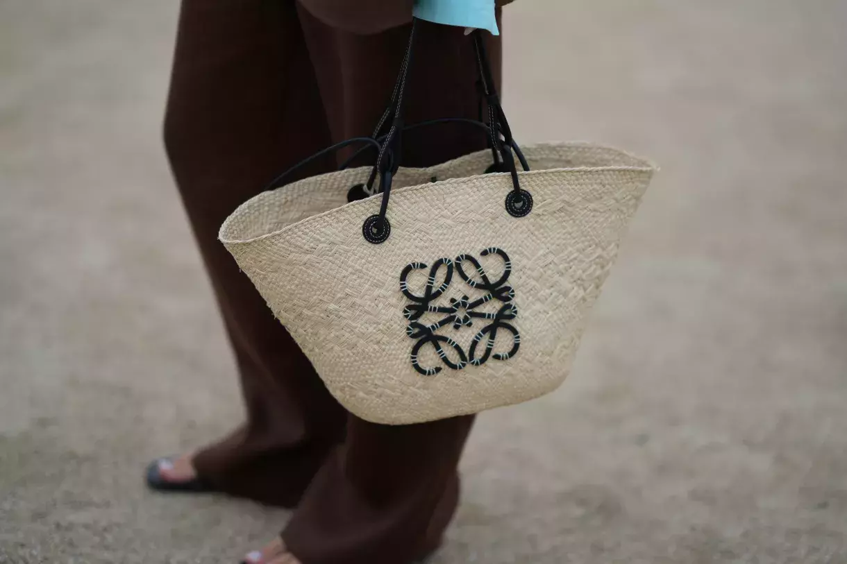 Slit Tote Large raffia tote bag, Loewe, 1 600 EUR, prodává Mytheresa