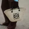 Proutěný košík Small Anagram Basket bag in iraca palm and calfskin, Loewe, 650 EUR